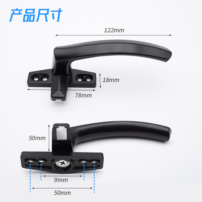 Iyada oo dhammaystirkeeda madow ee caadiga ah iyo naqshad dhismeed is haysta, gacanta daaqadani waxa ay ku habboon tahay daaqado badan oo aluminium ah iyo daaqado shiraac ah. Gacanku wuxuu bixiyaa xajin raaxo leh iyo kontorool sax ah marka la furayo ama la xirayo daaqada, taasoo hagaajinaysa isticmaalka iyo badbaadada labadaba. Saldhigeeda xooggan iyo qaab dhismeedka kor u kaca ee la xoojiyay waxay hubisaa rakibaadda xasilloon iyo nolosha adeegga dheer ee xitaa isticmaalka joogtada ah.